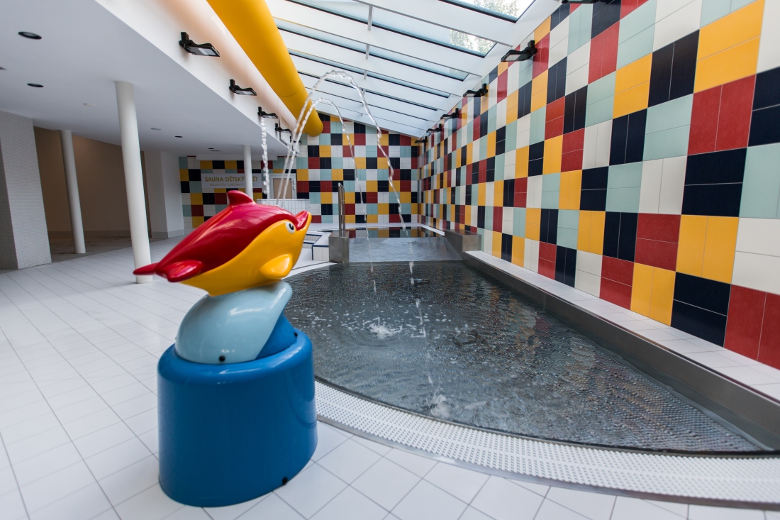 The complex also includes a sauna world with various types of saunas, a fitness center and a solarium for active regeneration. There is also a Plavecká restaurant with a daily menu and seating on the terrace. The restaurant also includes a Wet Bar, which is accessible directly from the pool area and is complemented by an outdoor sunbathing terrace in the summer months.