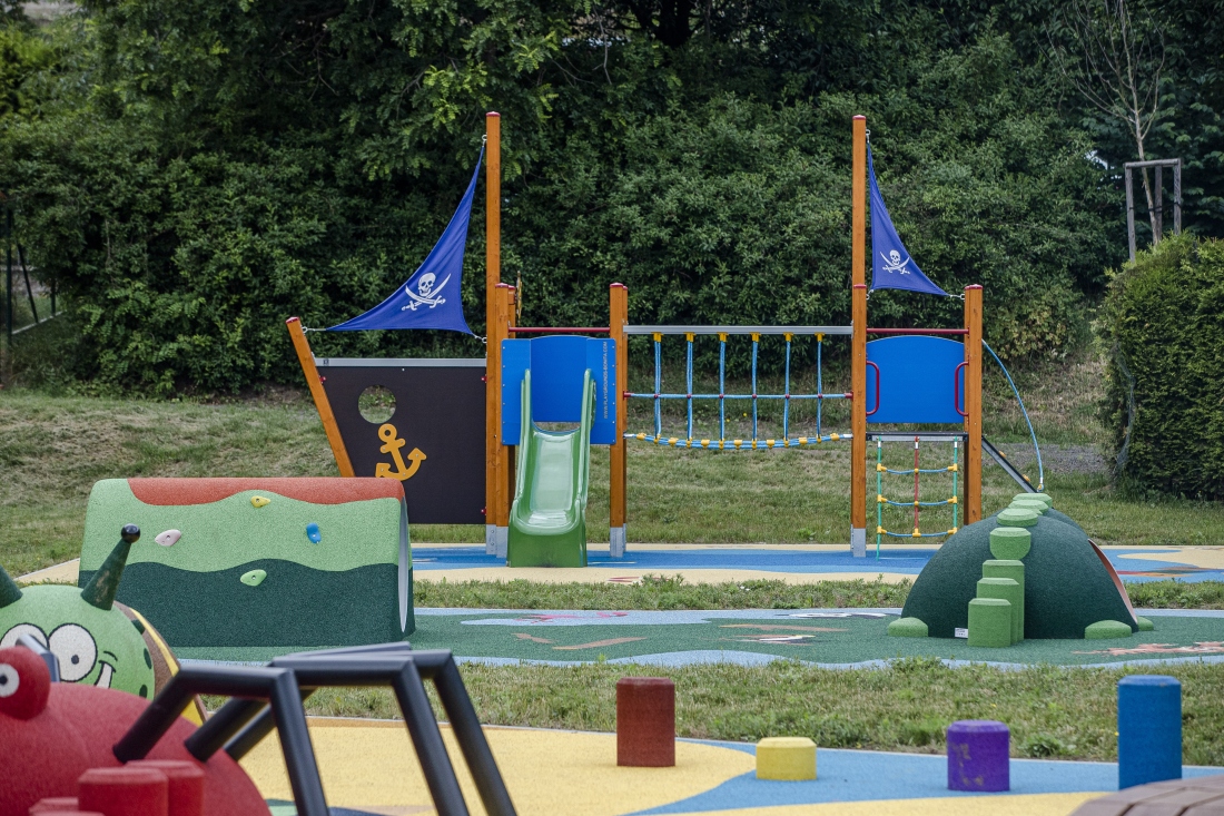 Enjoy summer relaxation in the fresh air in the outdoor sunbathing area of the Aquacentrum Teplice. Comfortable loungers, grassy areas and a children's water playground with colorful attractions and a paddling pool await you. The outdoor sunbathing area also includes a terrace where you can order lunch, a snack or just coffee or refreshments according to your taste. The outdoor zone offers plenty of space, peace and a pleasant atmosphere for moments of relaxation between visits to the pools - an ideal place for families with children who want to combine swimming and relaxation.